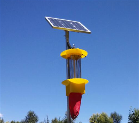 據(jù)了解,這種新型太陽能殺蟲燈既環(huán)保、又經(jīng)濟(jì),白天利用太陽能電池蓄電,晚上放電工作,誘殺害蟲,,每臺殺蟲燈有效防控面積大約在50至60畝。