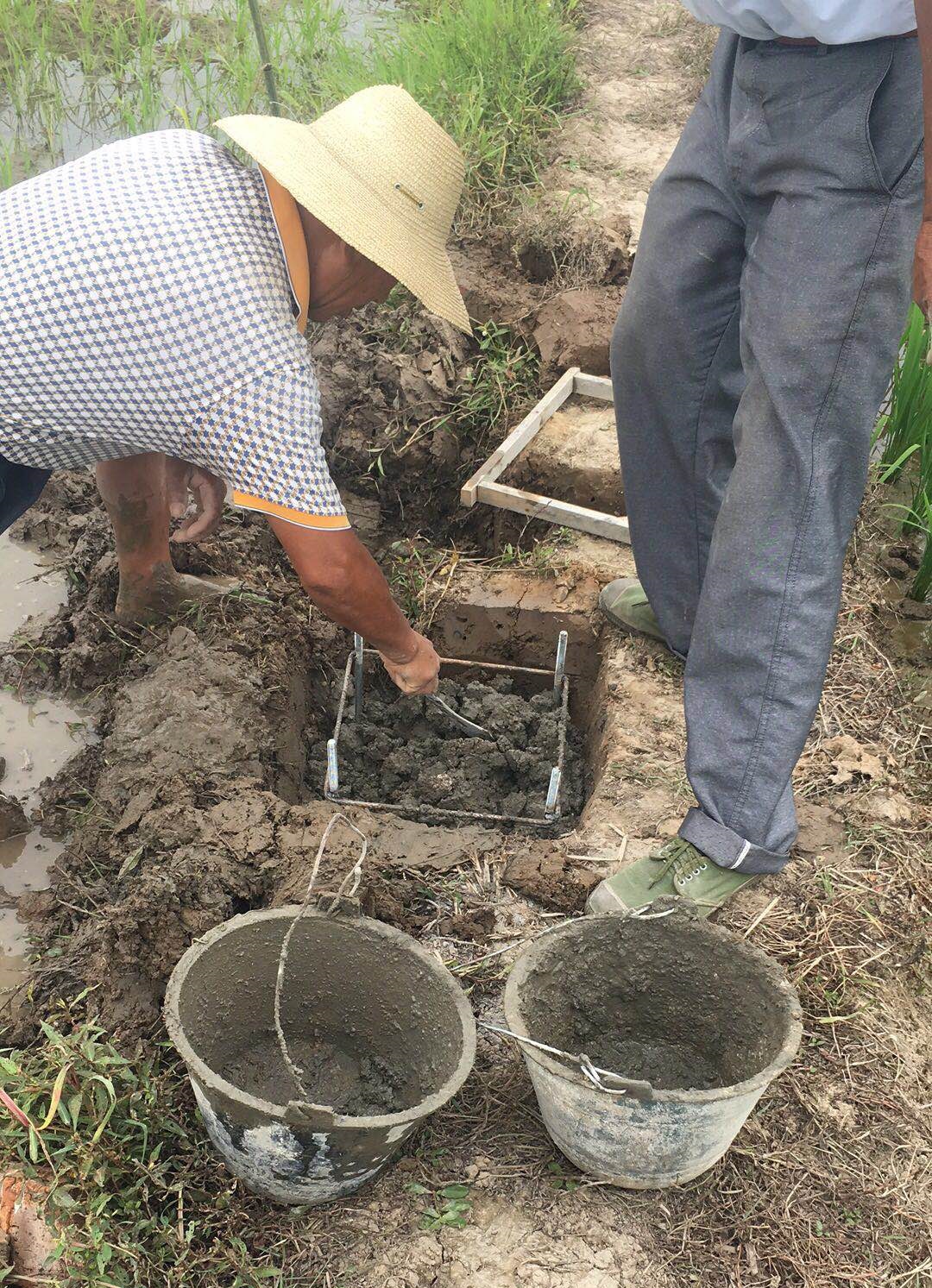 3、把地籠放到基坑內(nèi),倒入攪拌均勻的砂石